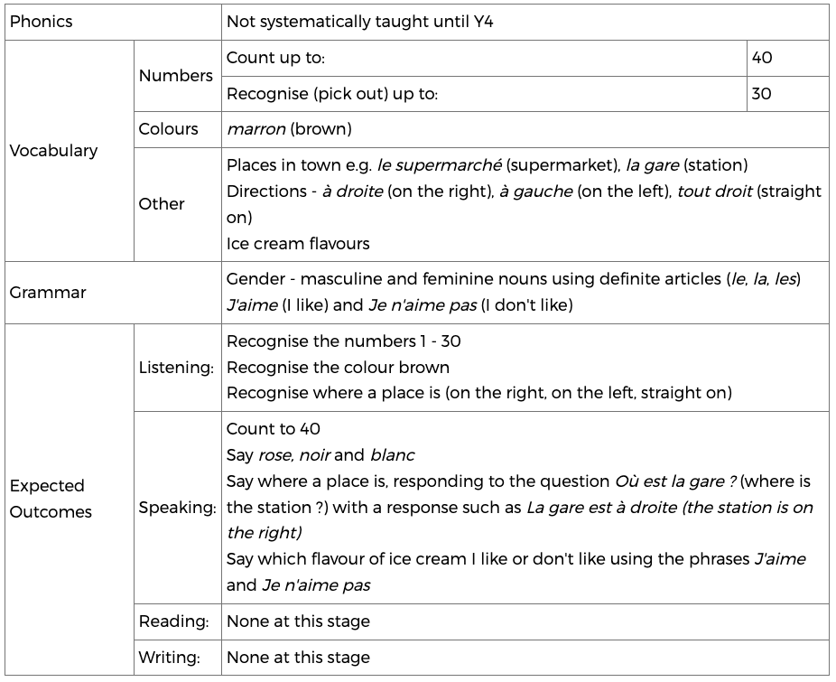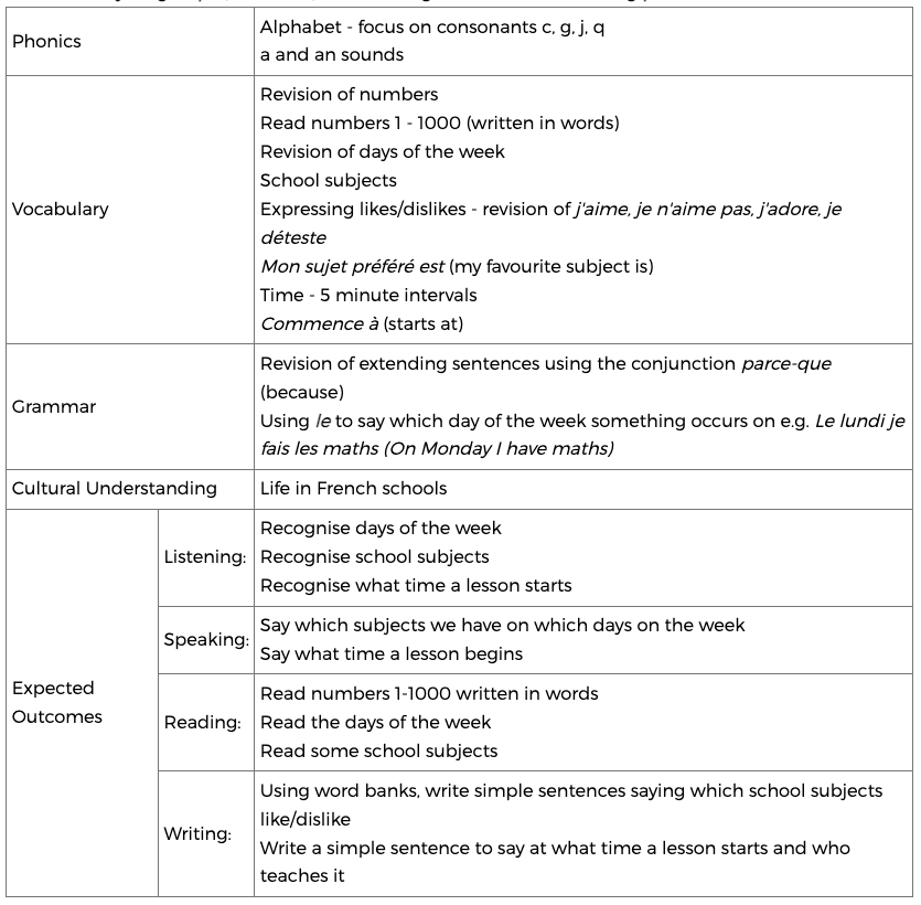The Year 3 cohort have not been taught French before. A new curriculum has been planned for them.