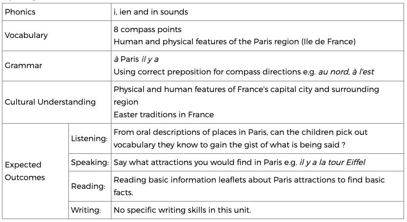 "Paris" (Spring second half) Revisit eight points of the compass Human and physical features of the Paris (Ile de France) region |