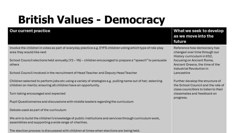 Promoting British Values at Greenmount Primary School
